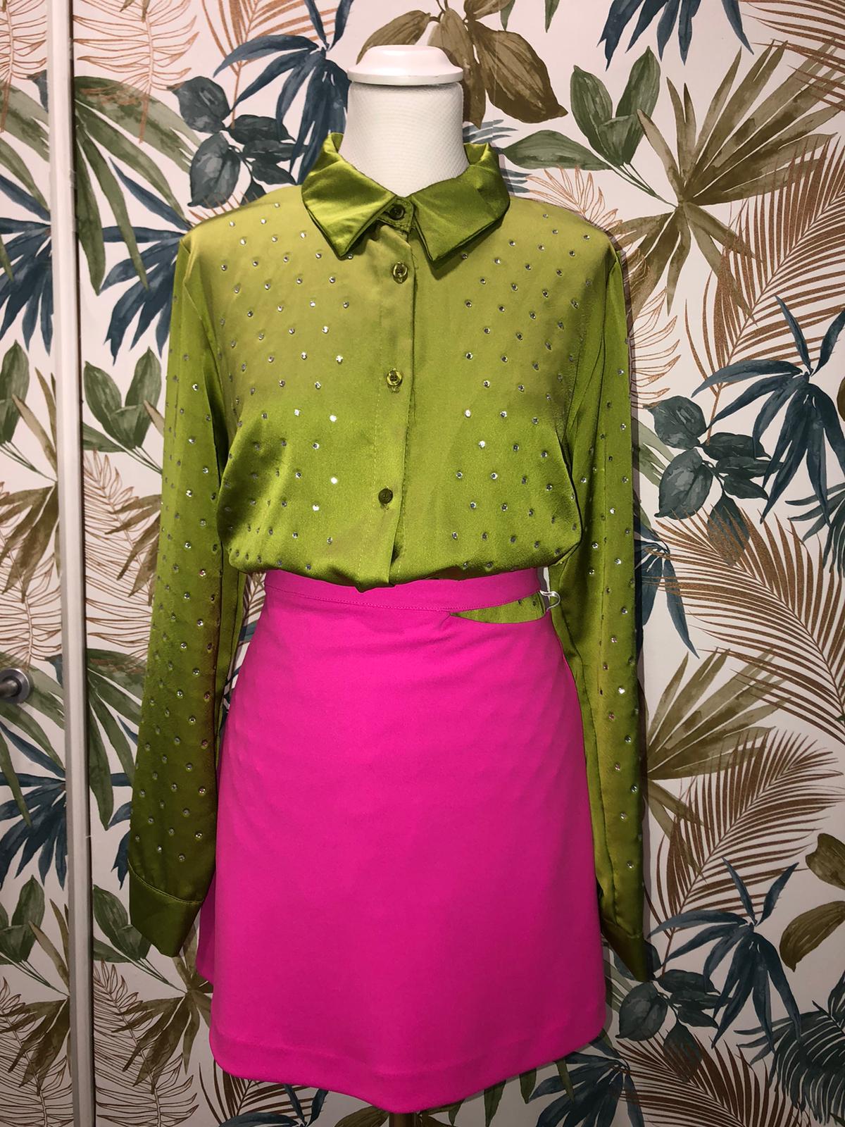 Gonna corta lumina con cintura laterale, apertura in vita